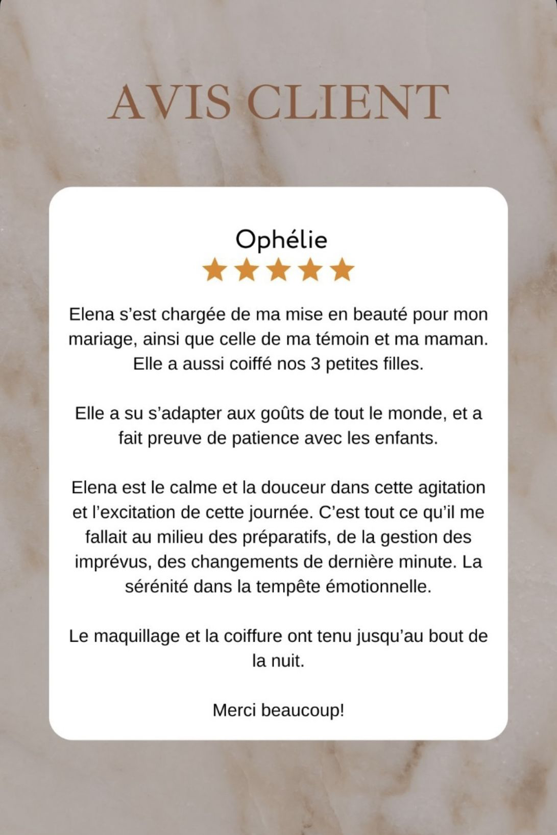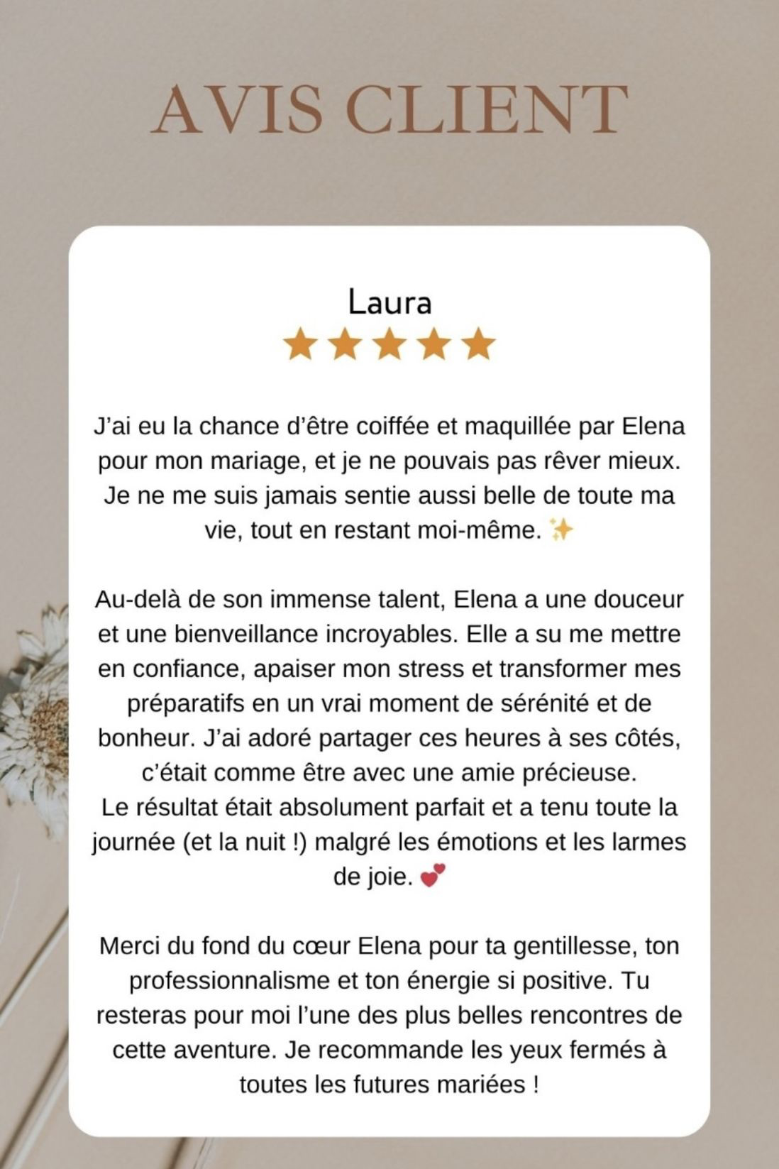 Mais il faut compter environ 2h pour la mariée et 45 min à 1h30 par invitée (selon la prestation choisie)